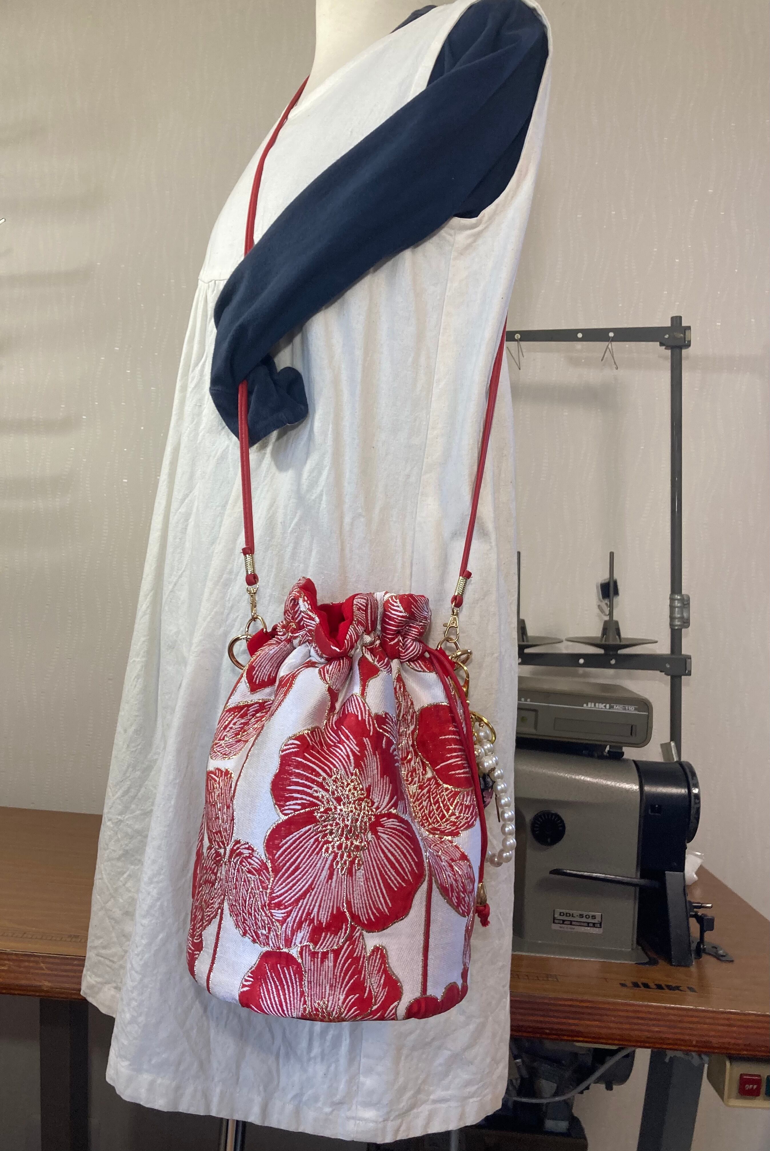 【2026福袋/赤い花柄華やかさと和モダンが香る、主役級バッグ巾着バッグ】➕plus one