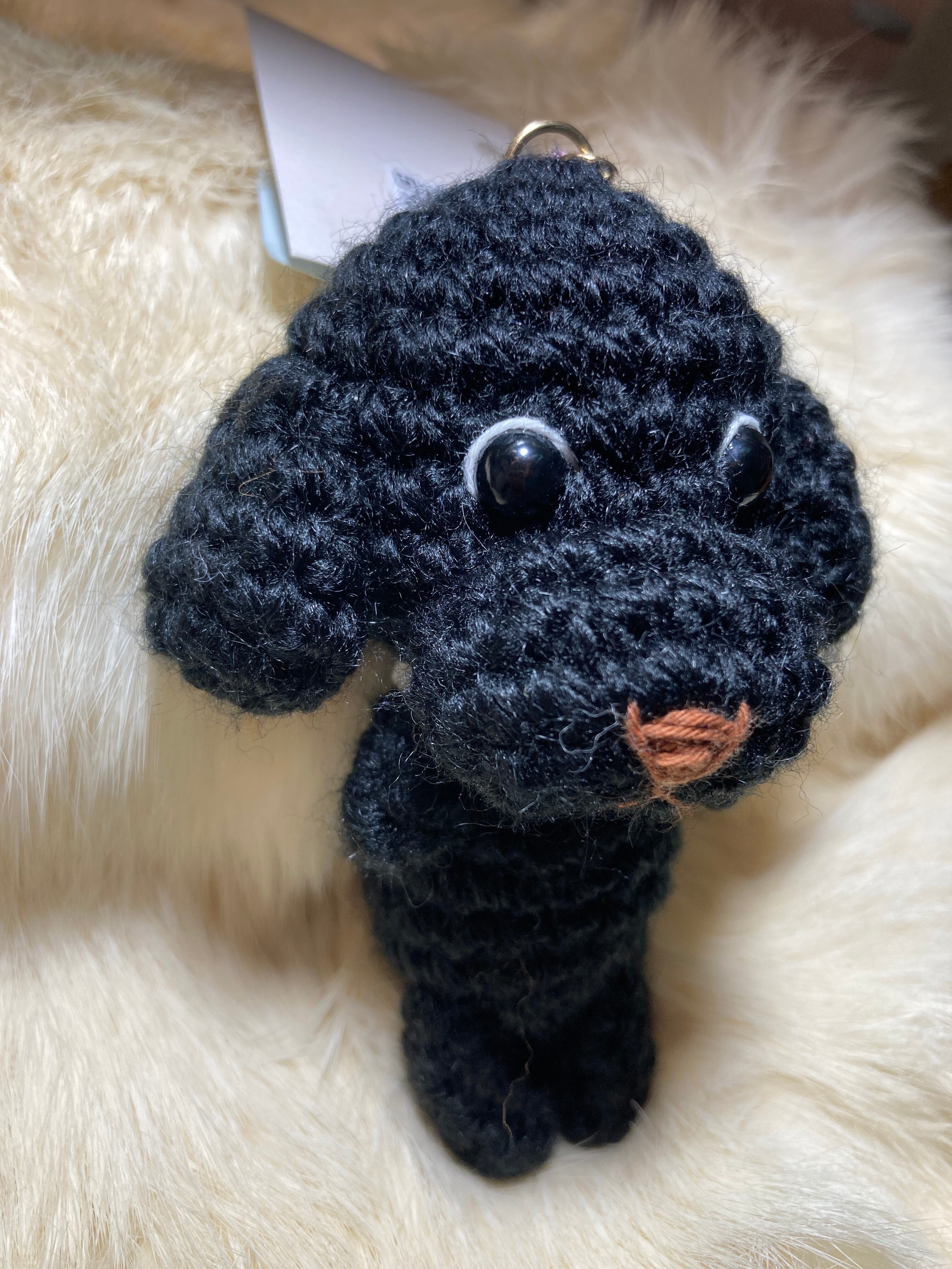 【編みぐるみキーホルダー】愛らしいトイプードル(黒)を手元に!