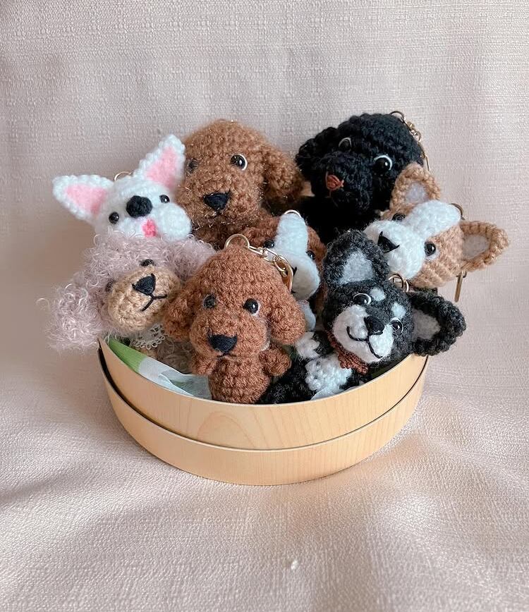 トイプードル(黒)をモチーフにした、可愛い編みぐるみキーホルダーです。細部まで丁寧に手作りされたデザインが特徴で、思わず笑顔になる愛らしさを持っています!日常使いはもちろん、大切な方へのちょっとした贈り物にもピッタリなアイテムです。